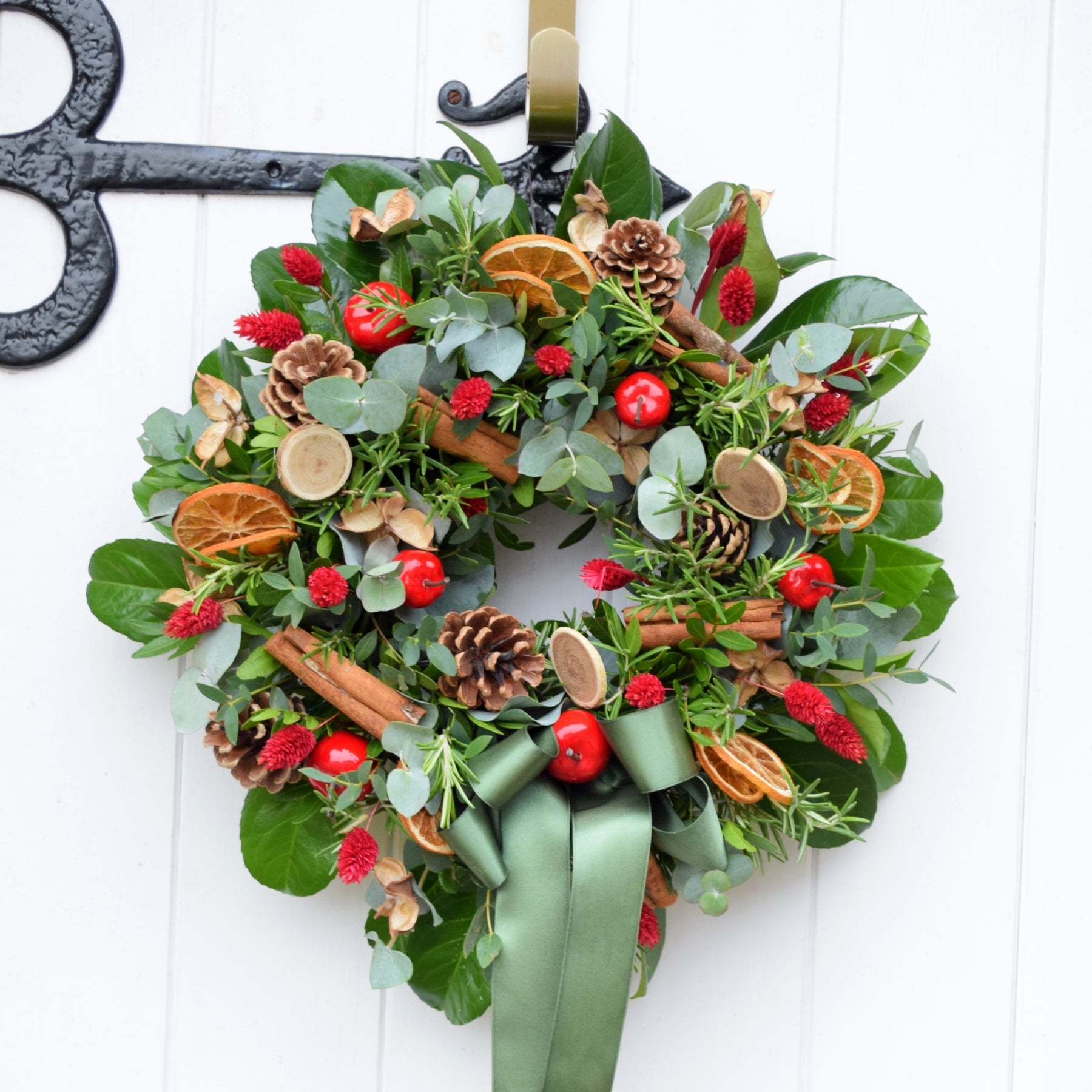 Finished with a ribbon handle for easy hanging, each wreath is uniquely designed, ensuring that no two are exactly alike, so, whilst your wreath may look different to the one pictured, they’ll still be just as lovely.